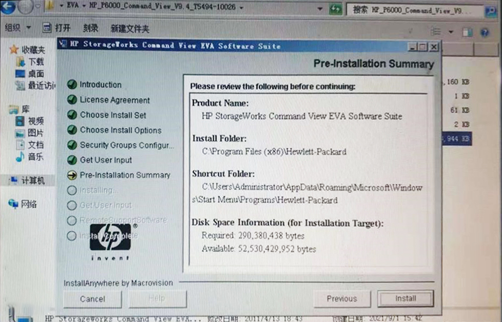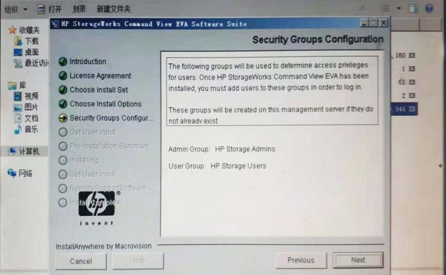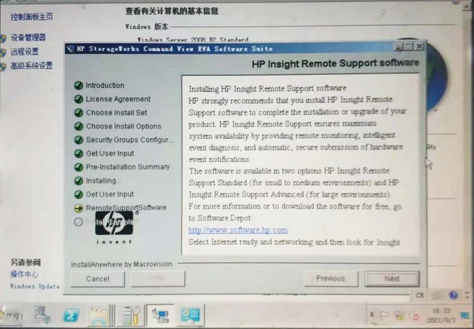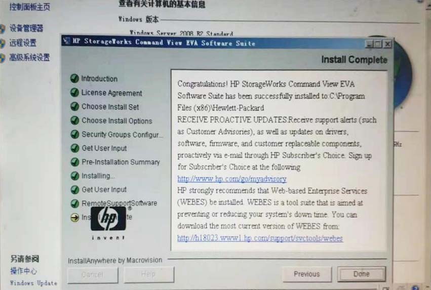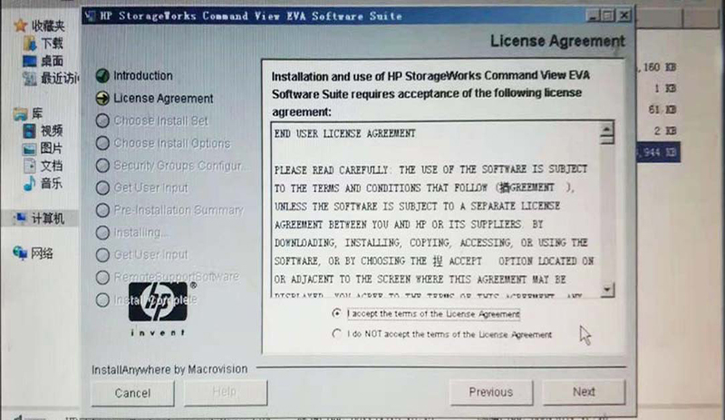 2, the system installation process is omitted, the following HP Command View EVA software installation process